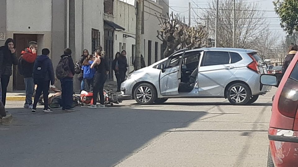 La colisión se produjo entre un auto y una moto. Trabaja personal de Inspección de Tránsito en el lugar.