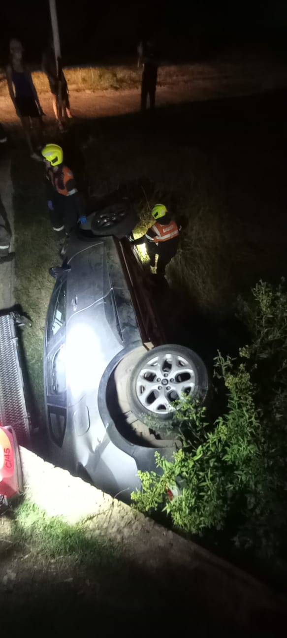 Un hombre y su hija fueron rescatados por el personal de Bomberos Voluntarios del interior del rodado en el que se trasladaban. El auto cayó a una zanja cuando intentaba acceder al puente de acceso de la torre Urbano ubicada en La Rotonda.