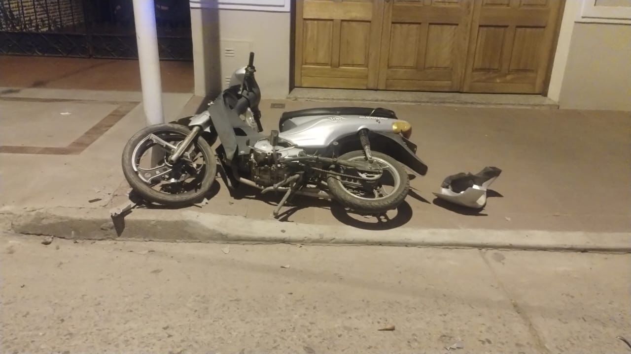 Una motocicleta Guerrero Trip, conducida por un hombre mayor de edad, impactó en contramano contra un poste de luz.