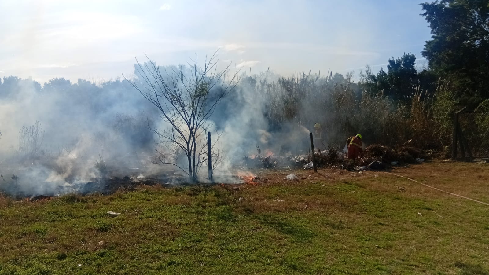 «Ayer fue el tercer incendio forestal (de la semana). El martes se desplazó móvil 36 a un incendio de cañas y pastos bajos debajo del puente de Ruta 41, haciendo la extinción con mochilas y con herramientas manuales», indicó.