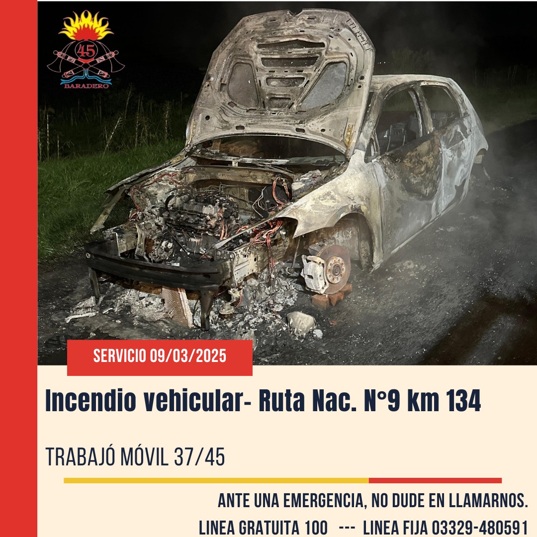 “El domingo a las 19.50 horas, fuimos alertados por un incendio vehicular, en Ruta 9, km 134, un vehículo en el puente incendiado generalizado, no tenía ruedas, apoyado sobre ladrillos y se trabaja en un ataque directo”, indicó.