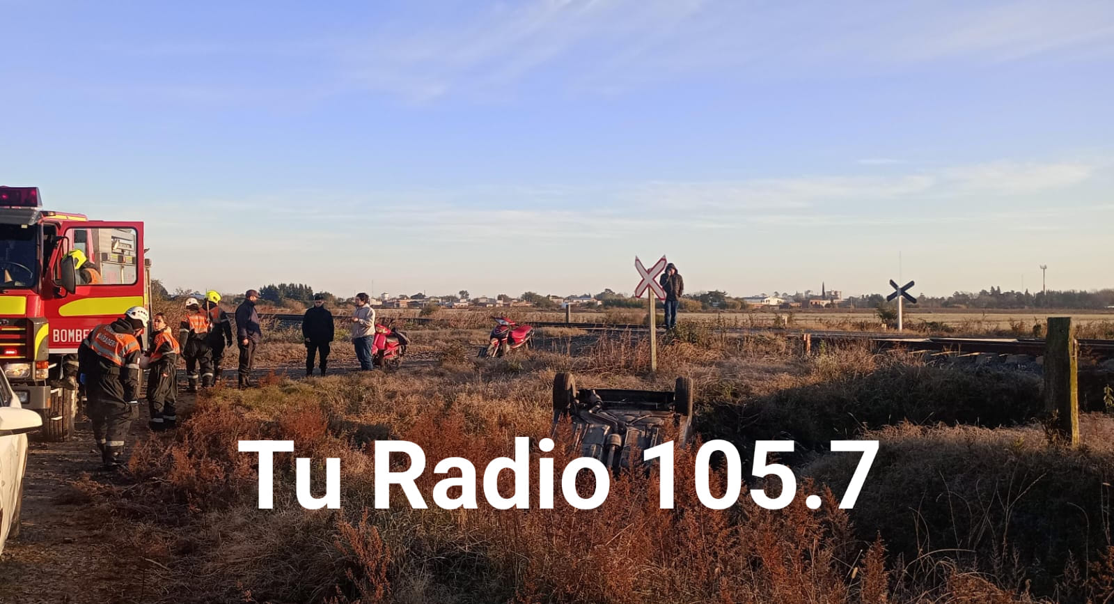 En el lugar, Bomberos rescato a una persona que se encontraba en el automóvil que cayó a un desagüe del paso a nivel.