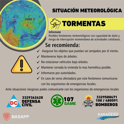 Ante cualquier inconveniente recordamos comunicarse con Defensa Civil al 3329 362628 o mediante la opción correspondiente en la aplicación Basapp.
