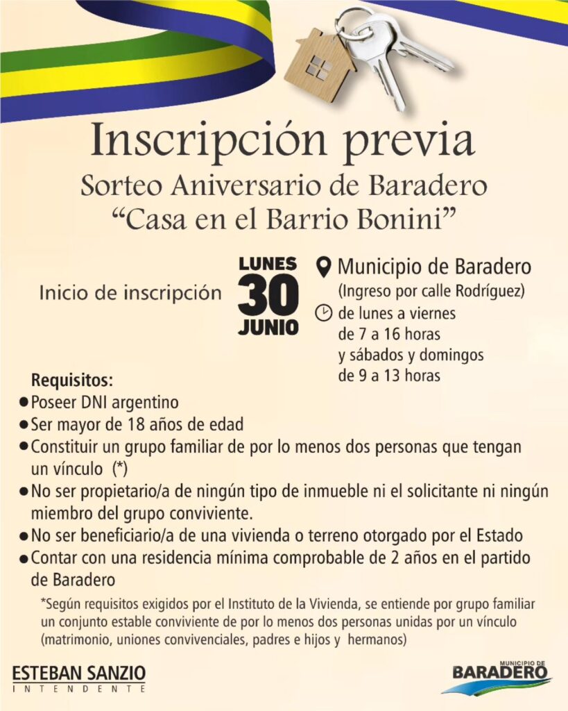 - Contar con una residencia mínima comprobable de 2 años en el partido de Baradero