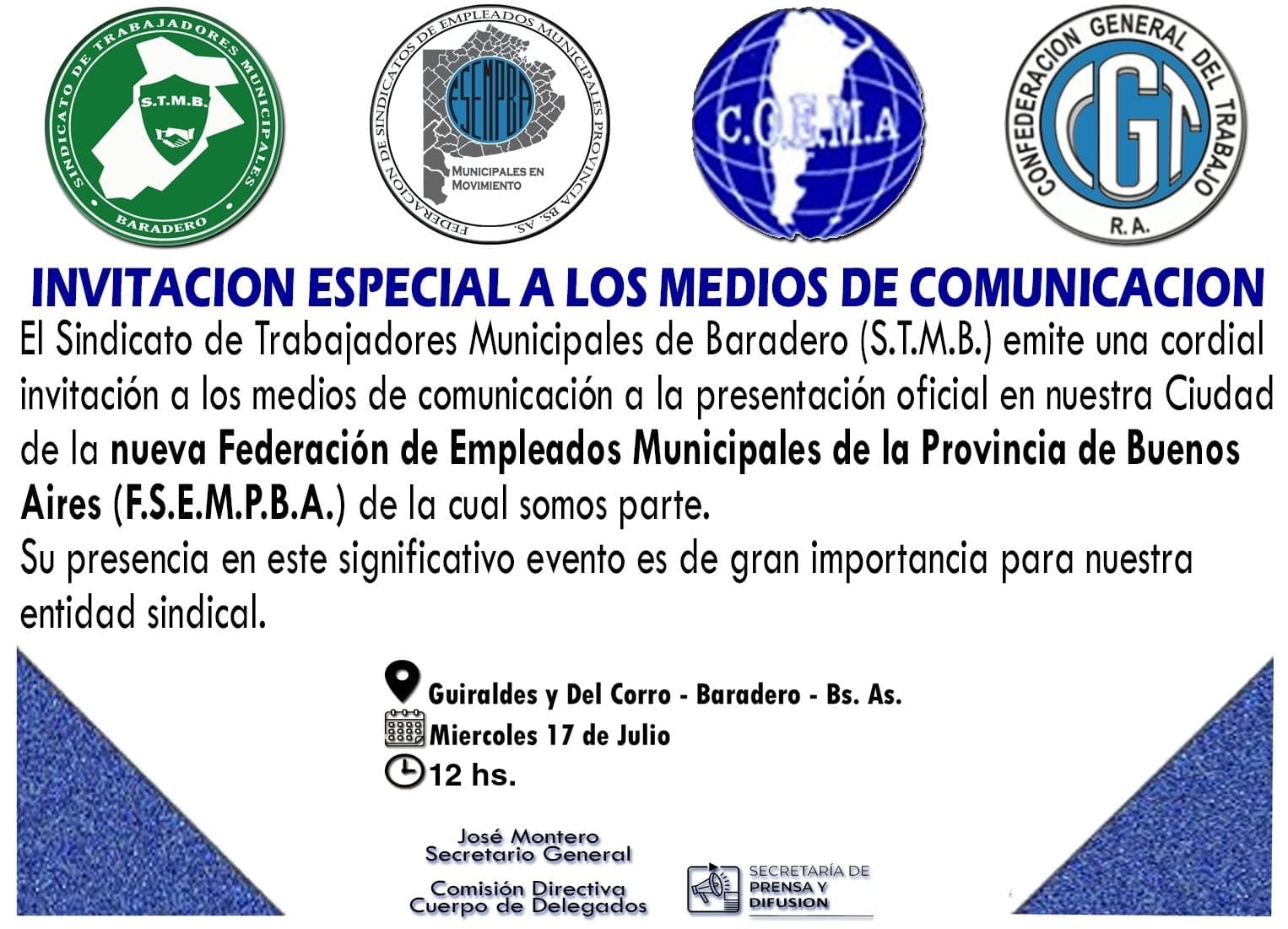 El Sindicato Municipal de Baradero es parte de esta federación y cumplen con el rol de la Secretaria de Prensa y Difusión.