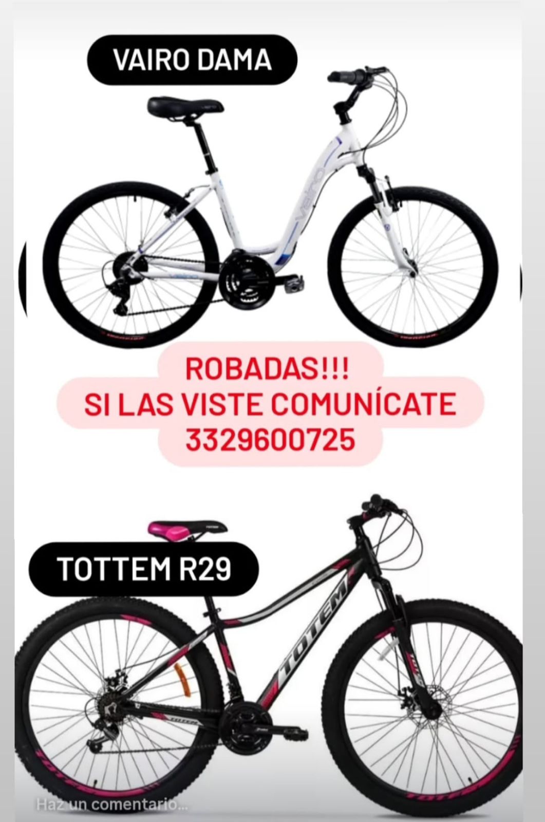 Se trata de una bicicleta Vairo color blanca y una Tottem R29 color gris.