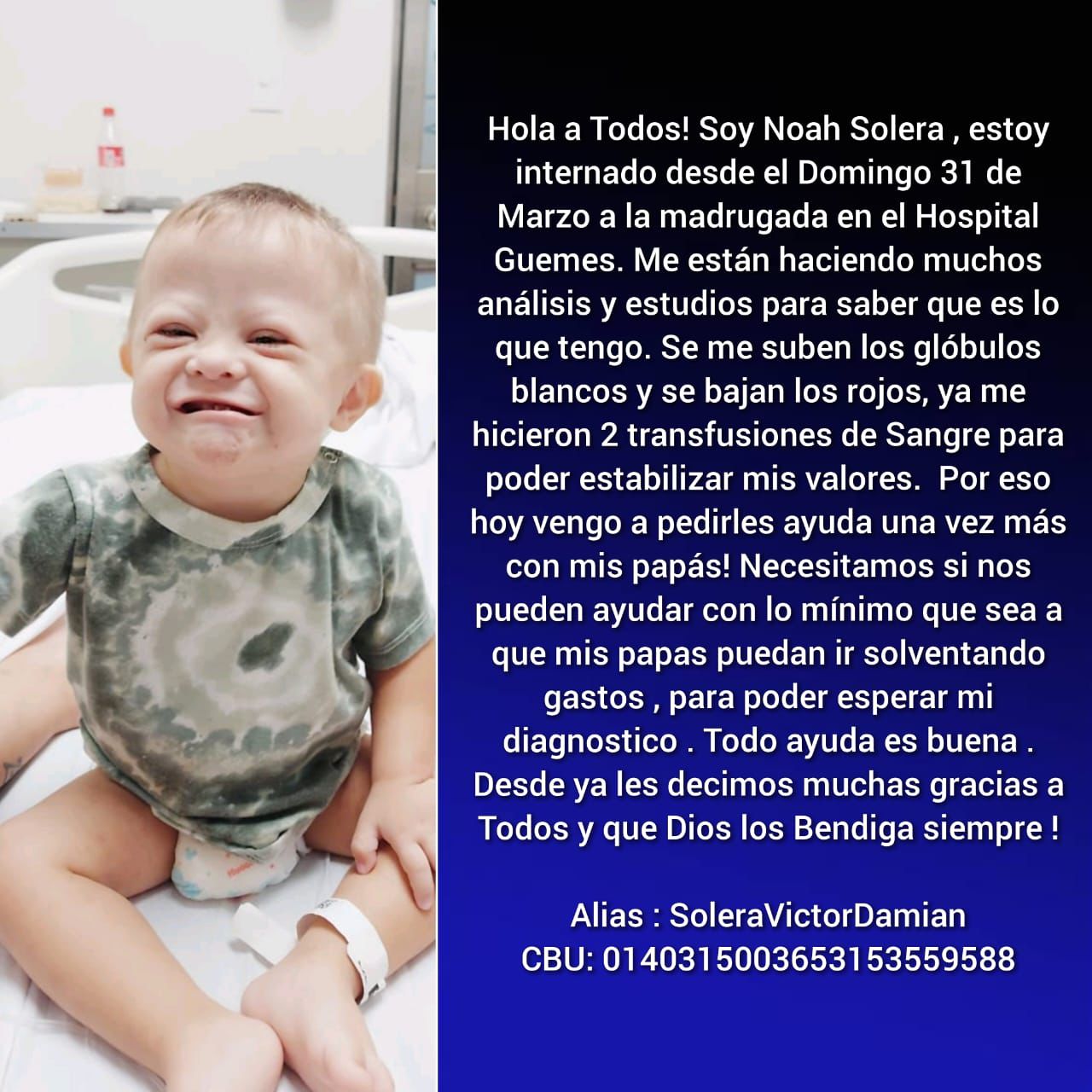 Damián, papá de Noah, contó a través de #TuRadio: “Ayer por la tarde nos llegaron los resultados de los estudios y el hematólogo nos dijo que tenía leucemia. Cuando nació estuvimos más de un mes y medio internados, ahora no sabemos cuánto tiempo nos va a llevar porque es un tratamiento largo”.