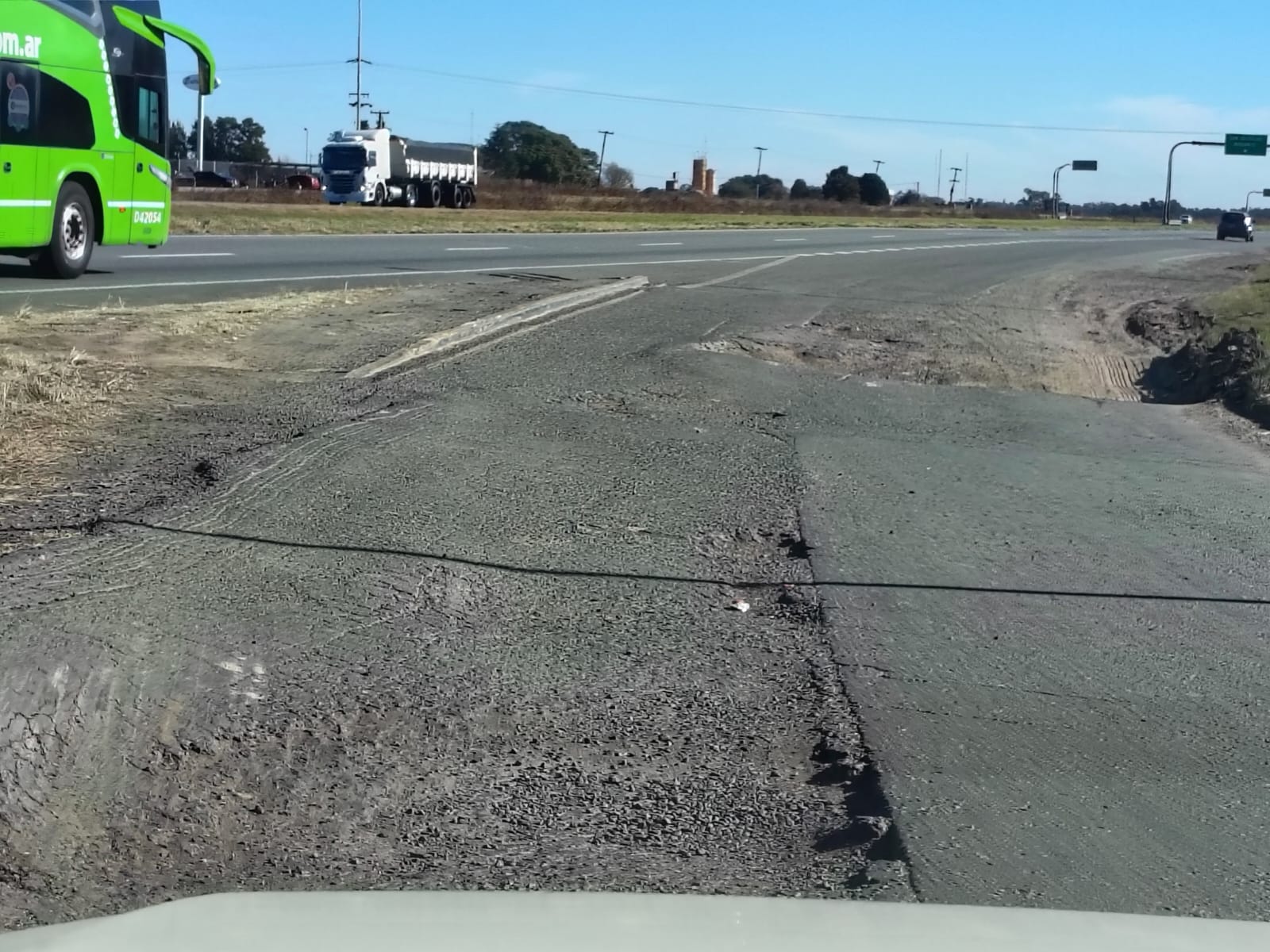 Personal de Corredores Viales, con asistencia del Municipio de Baradero, se encuentra reparando la bajada del Puente de Ruta 9, carril Buenos Aires – Rosario.