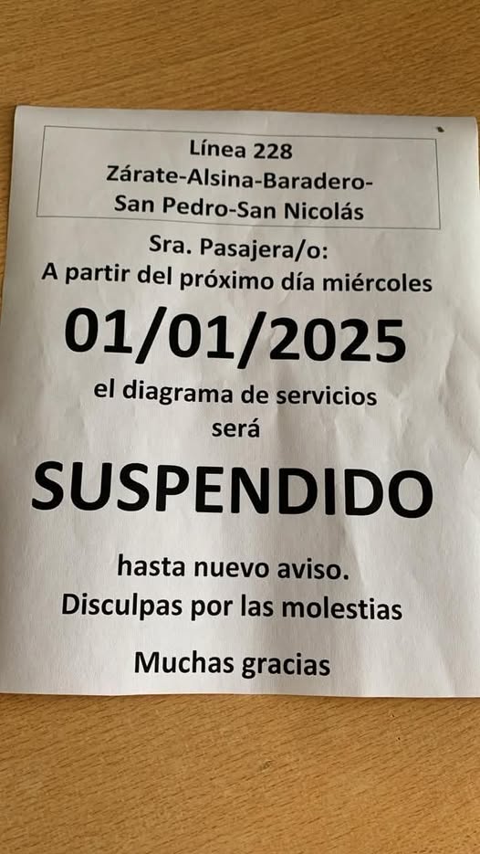 De este modo la línea 228 informó a sus usuarios sin brindar más detalles. «Lamentable la decisión porque ahora somos rehenes de otros servicios que son mucho más caros», dijeron vecinos a #TuRadio.