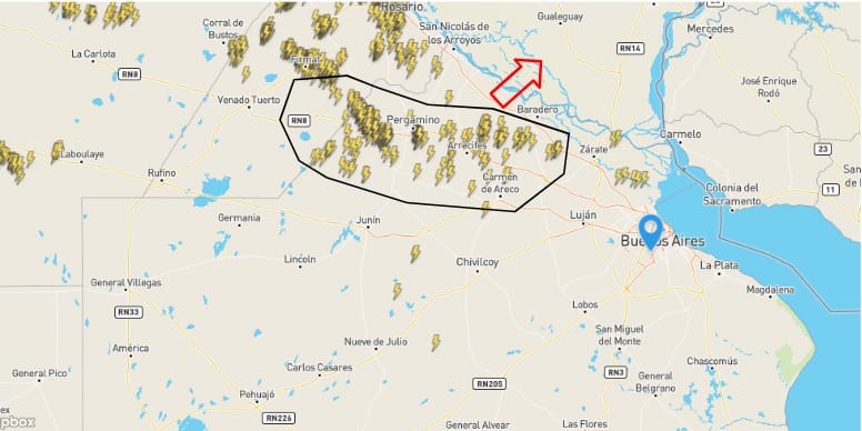 Estas tormentas se están debilitando sobre la PBA, aumentando su intensidad en provincias vecinas.