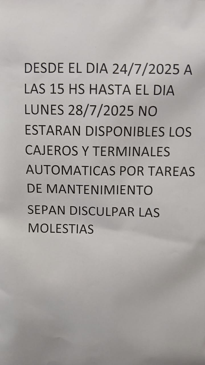 La entidad privada comunicó a sus clientes que las operaciones se retomarán a partir del próximo lunes 28 de Julio de 2025.