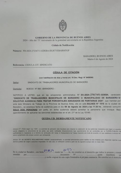 El encuentro tendrá lugar este viernes a la mañana en la sede local de la cartera laboral. Fue tras la presentación que hizo el Soemb luego de que el ejecutivo resolviera aplicar un aumento por decreto.