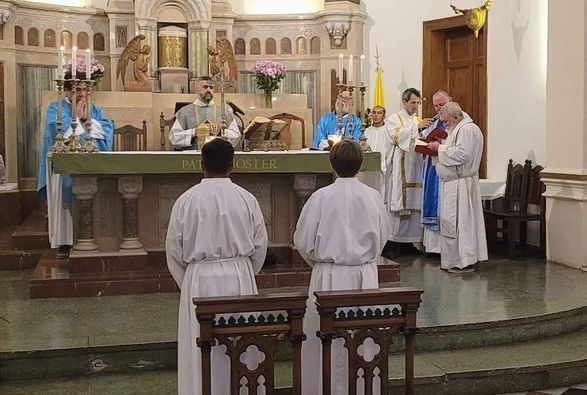 En la Santa Misa de Vigilia de la Solemnidad de la Asunción de la Santisima Virgen María, estuvieron también los sacerdotes Darío, Rubén, Luis, Pablo y el Diácono Sebastián dando » Gracias» por su Servicio Pastoral.