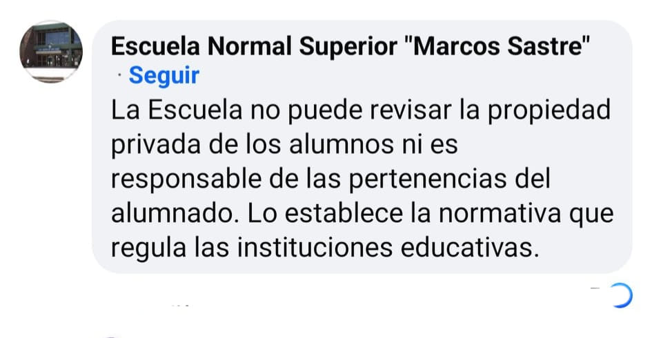 Utilizando el Facebook oficial, la institución señaló en la nota que hizo este medio que «este proceder lo establece la normativa que regula las instituciones educativas».