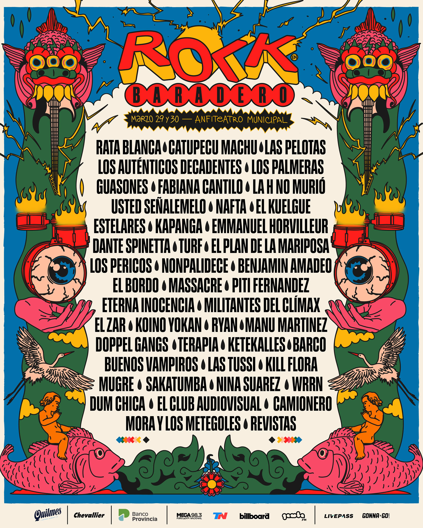 Rata Blanca, Catupecu, Las Pelotas, Los Palmeras, Los Auténticos Decadentes, Guasones, entre otros.