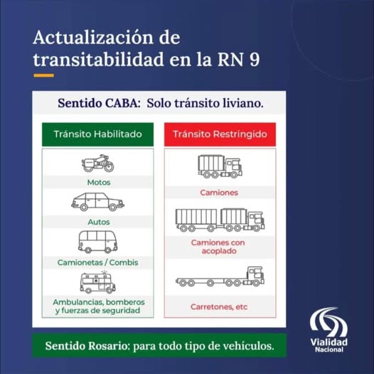 Es con restricción para vehículos pesados. Hay un dispositivo de seguridad entre los km 108 al 112. Los camiones deben seguir circulando por Ruta 41 y luego Ruta 8.