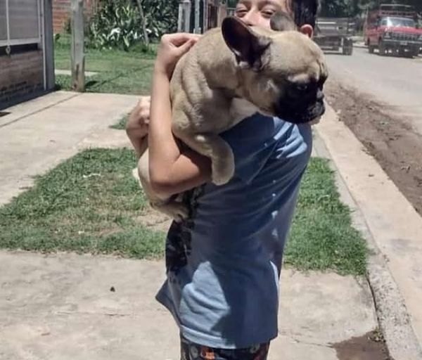 Simón es un perro raza Bulldog Francés. La noche del sábado se escapo de la casa de sus dueños. Un vecino encontró al animal y lo vendió por $300.000 a un turista de San Martín que se encontraba pescando en la costa de Baradero.