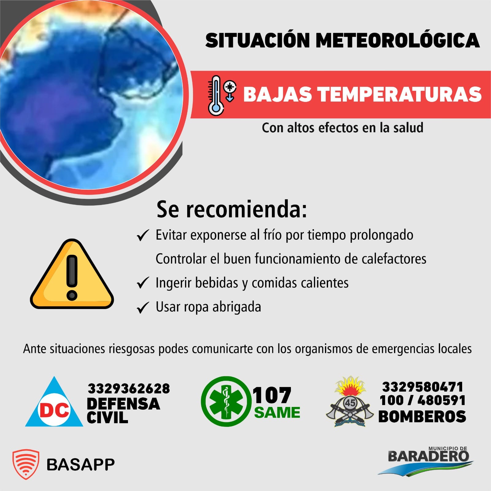 Las temperaturas mínimas más bajas se darán principalmente en el centro y norte de la PBA con valores que estarán entre -6/-5°C y -1°C.