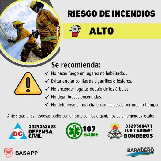 Ante cualquier emergencia, comunicarse con Bomberos y/o Defensa Civil, al 3329 362628 o mediante la opción correspondiente en la aplicación Basapp.