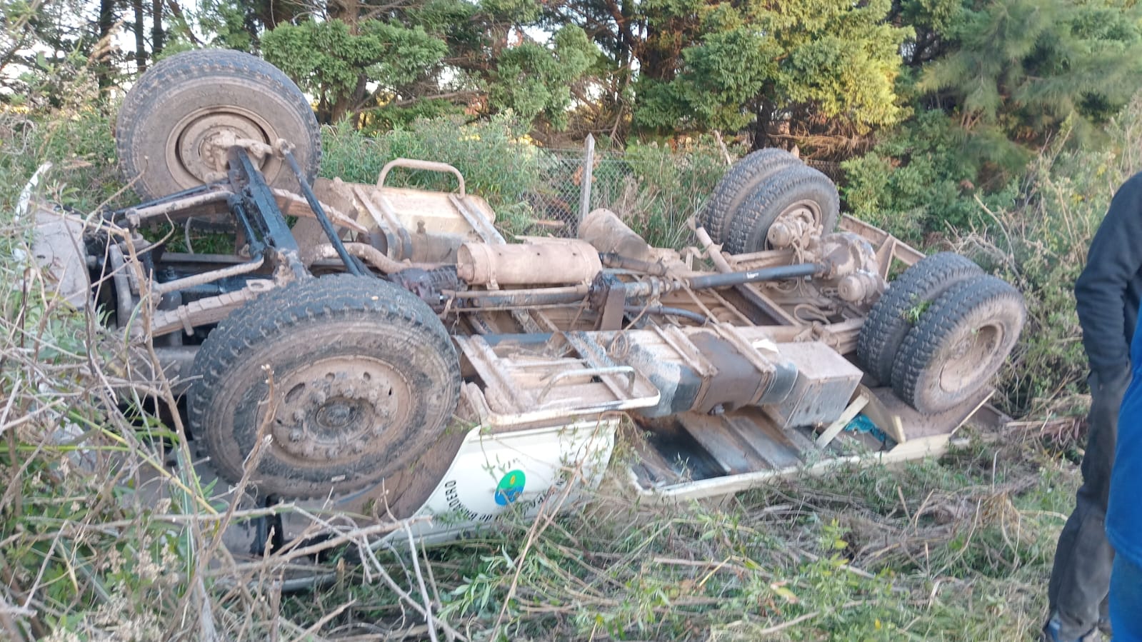 “El camión volvía del basural hacia Alsina, justo mordió una alcantarilla que estaba tapada de agua y volcó; quedó con las ruedas para arriba. El chofer iba solo en el camión, no iba nadie más con él”, indicó el funcionario.