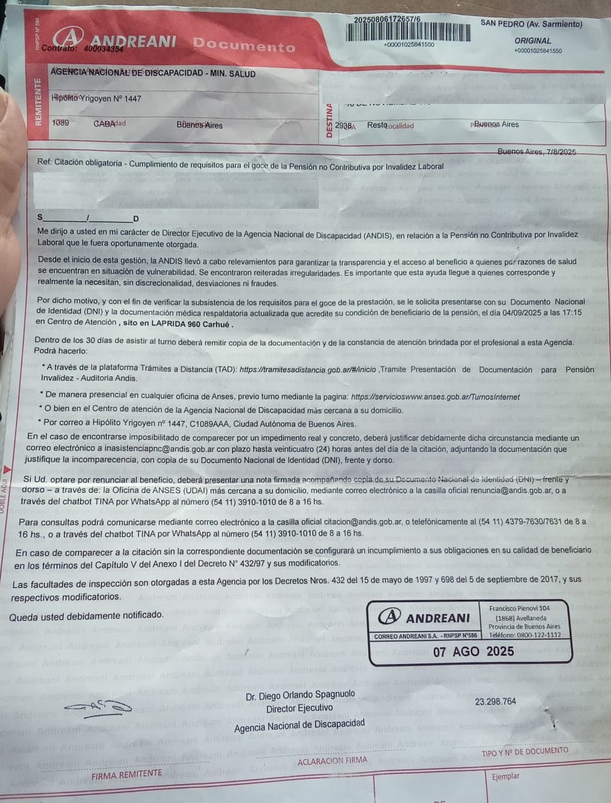 «Tengo una pensión no contributiva. No hice la auditoria en San Pedro porque estaba esperando que me llegara la carta. Somos cinco de Alsina que tenemos que viajar al lugar», dijo Rosana a #TúRadio, una de las afectadas.