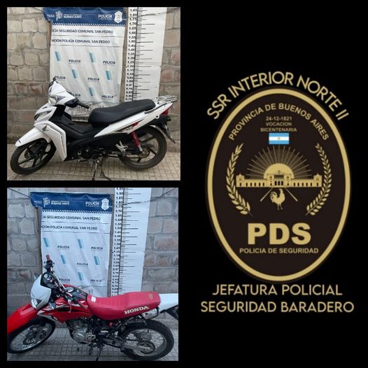 Ayer por la tarde delincuentes se llevaron una Honda XR y una Honda Wave. El primer vehículo se encontraba en Boedo al 1400 y la segunda de Oro al 400. Tras la denuncia de los damnificados, personal del Centro de Monitoreo de San Pedro pudo advertir como delincuentes ingresaban a la localidad en ambos rodados. Por #TuRadio, el periodista de San Pedro Martín Pérez, comentó que “las motos fueron encontradas en el Barrio Igoillo”. Pero no hubo detenidos.
