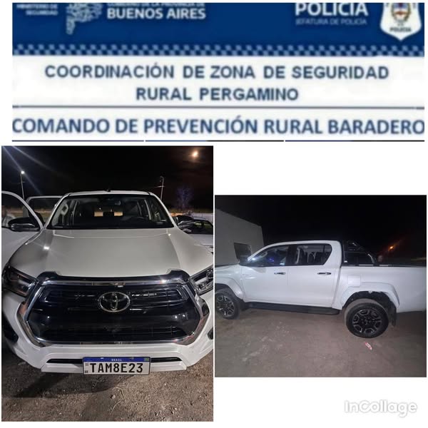 La camioneta tenía pedido de secuestro tras ser robada el día martes de una concesionaria Toyota ubicada en CABA.