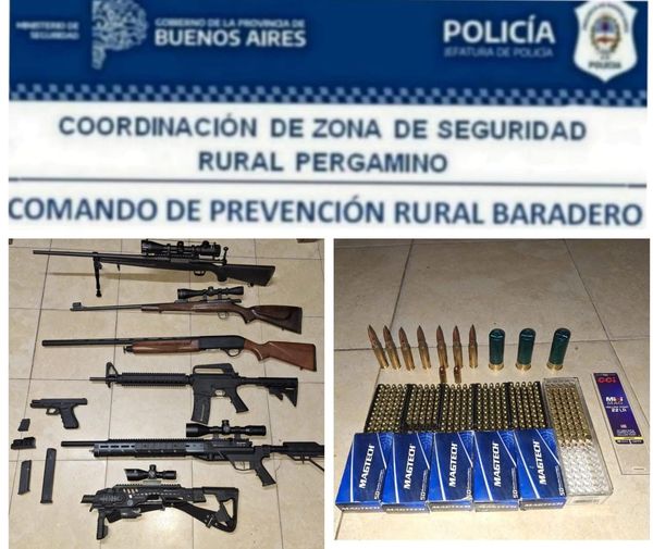 Secuestraron un fusil calibre 380, una escopeta a repetición, una carabina a repetición, una pistola 9 mm, gran cantidad de proyectiles y municiones.
