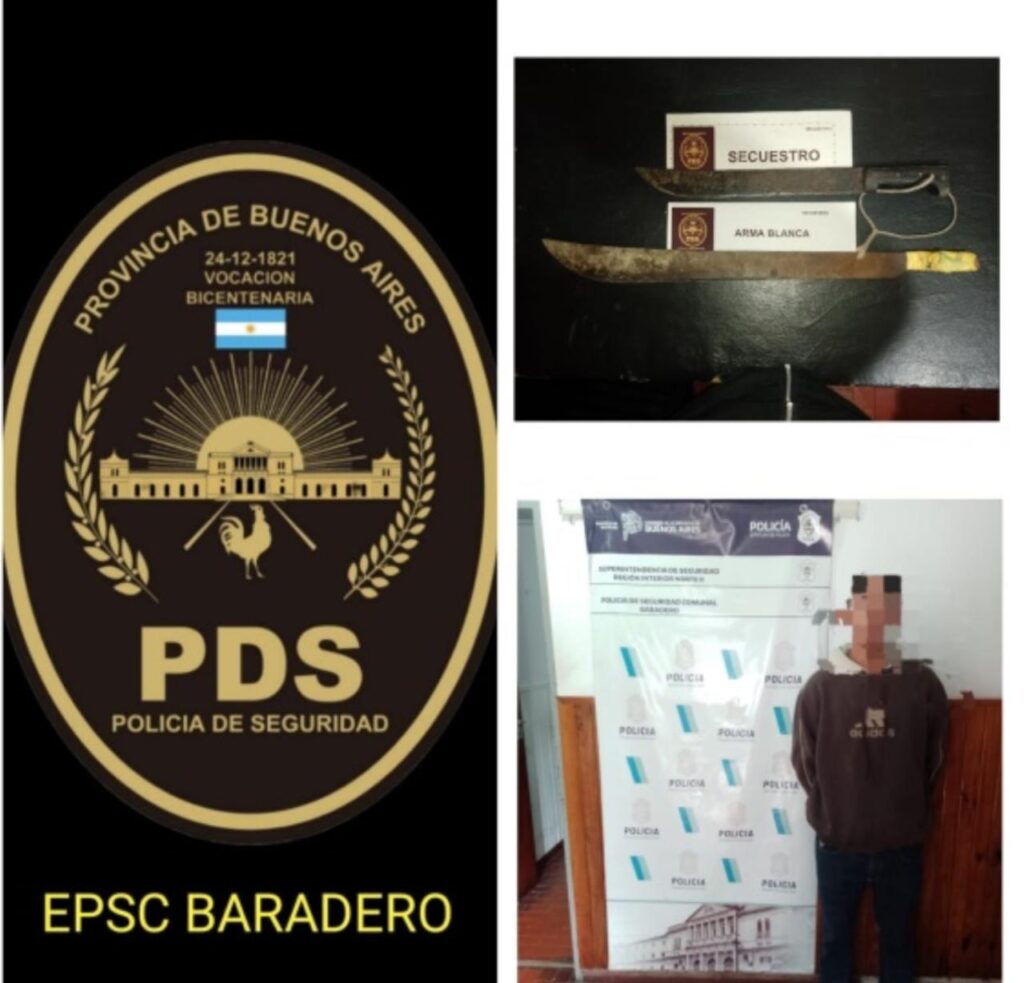 AMENAZAS AGRAVADAS-VIOLACION DE DOMICILIO-APREHENSION-SECUESTRO: Personal policial GTO EPC Baradero, conjuntamente con DDI, raíz de una denuncia recepcionada en la Estaciona de Policía el día 09 del corriente por parte de la víctima y tras tareas de campo se solicitó orden de allanamiento para un domicilio situado en calle Libertad de esta localidad, otorgado el mismo por Juz. Gtias N° 3, la diligencia arroja resultado POSITIVO. Procediendo a la aprehensión de un masculino mayor de edad indicado como el causante y al secuestro de dos machetes, mismos utilizados al momento de las amenazas. Se traslada al aprehendido a sede Policial fines notificación de la causa por el delito de marras y posterior libertad.
