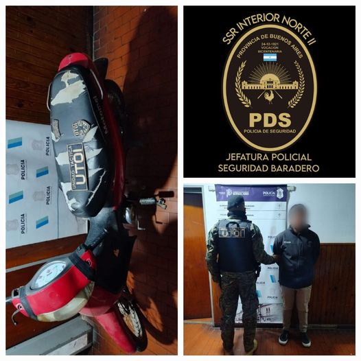 Se procede en calle Malabia y Rene Simon, a la aprehensión de un sujeto, quien circulaba en motocicleta marca OKINOI con pedido activo de la UNIDAD REGIONAL LA PLATA.