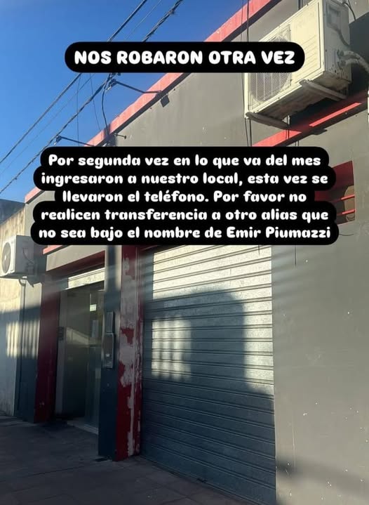 Ahora fueron víctimas de un robo del teléfono celular. Desde la cuenta oficial del comercio recomendaron a sus clientes no realizar transferencias a la cuenta comercial.