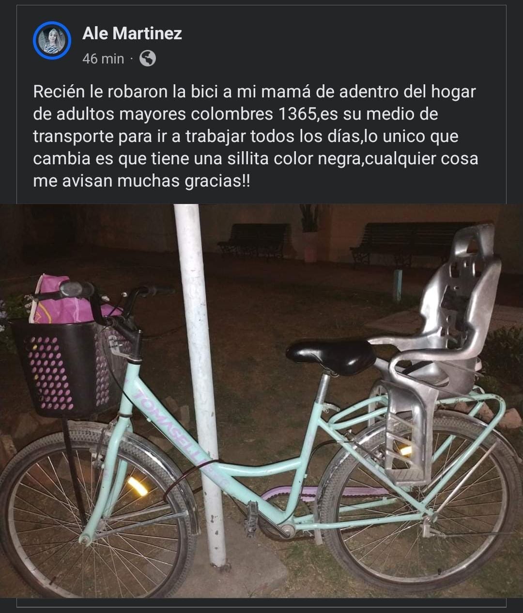 Vanesa, damnificada, contó: “Dejé la bicicleta a las 5 de la mañana y cuando salí de trabajar a las 13 me di cuenta que ya no estaba. Siempre dejé las bicicletas adentro del Hogar y nunca había pasado nada”.