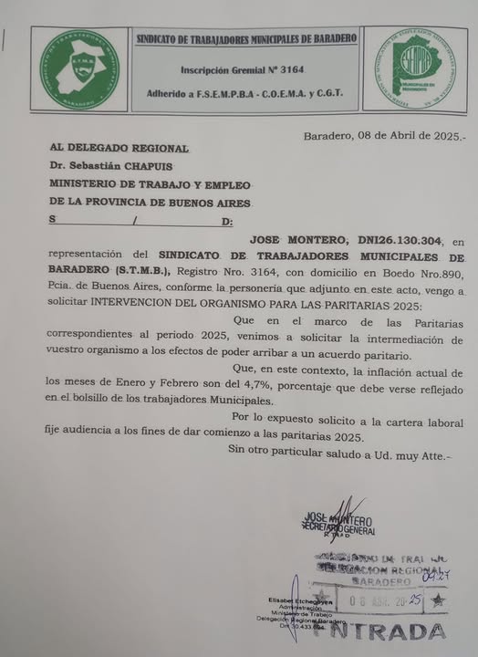 Así lo confirmó el secretario general de SOEMB, José Montero, acerca de la nota que elevaron para pedir el inicio de las negociaciones con respecto a la discusión por las paritarias 2025. «La apertura de la paritarias 2025 la hicimos la semana pasada y la subimos ayer», expresó el referente gremial.