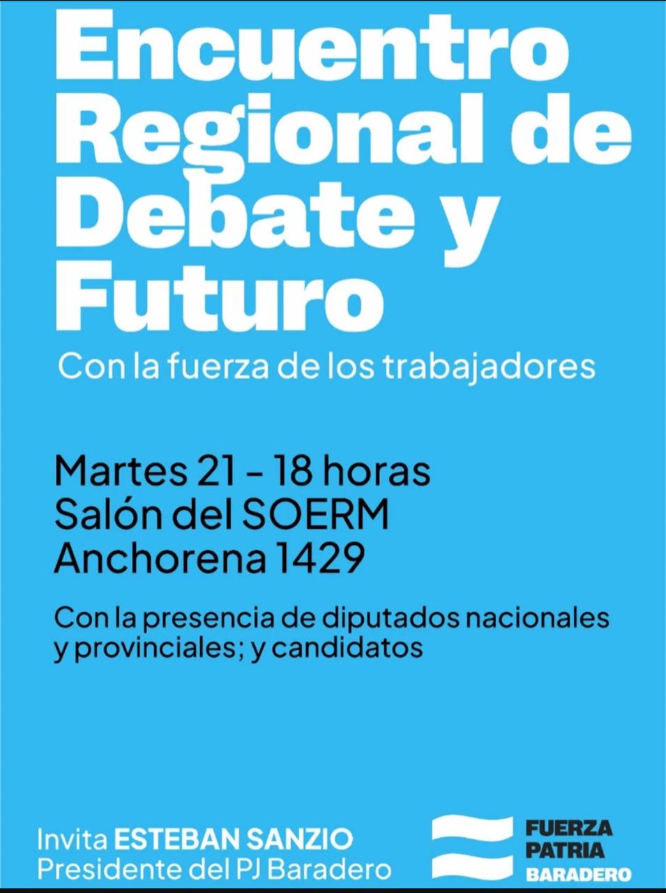 Será este martes 21 de octubre a las 18 horas en el salón de SOERM en Anchorena 1429. Habrá presencia de Diputados Nacionales y Provinciales como también de Senadores. Leticia Houriet, concejal electa de Fuerza Patria, invitó a la comunidad a participar.