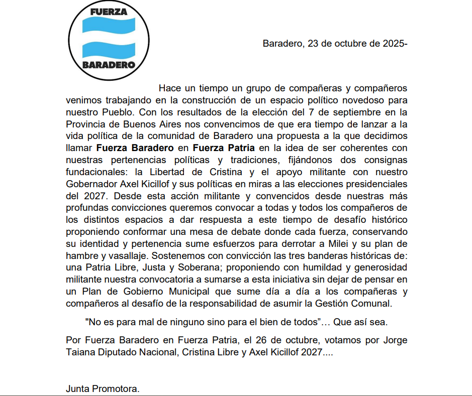 «Surge a partir de un grupo que venimos conversando en la cual estábamos poniendo vistas en ya en el año 2027 y ver cómo empezar a preparar una propuesta para Baradero que creemos que debe ser innovadora en lo cual los distintos sectores podamos conversar sobre el futuro que le queremos dar a Baradero», explicó.