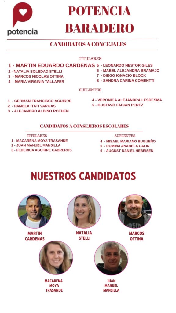 Lo manifestó por #TúRadio, Martin Cárdenas. Es el primer candidato a concejal del ‘Frente Potencia’ en Baradero. Será escoltado en la lista por los profesores, Natalia Stelli y Marcos Ottina, respectivamente. «Vamos a generar una propuesta moderna, conciliadora, vamos a ser una buena alternativa, vamos a intentar hacer la mejor campaña del mundo», expresó. En otro orden, José Serpi, arquitecto, oriundo de Baradero, será 3º candidato a Diputado Provincial por el mismo frente.