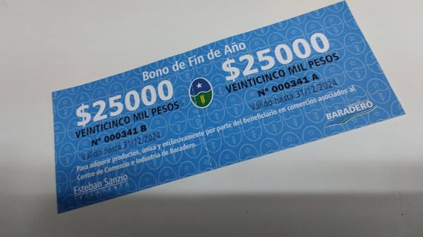 Desde ayer y hasta el 30 de diciembre, se hace entrega del bono de $50.000 que el municipio entrega a su plantel. El mismo es para comprar en distintos negocios adheridos al Centro de Comercio e Industria de la ciudad.