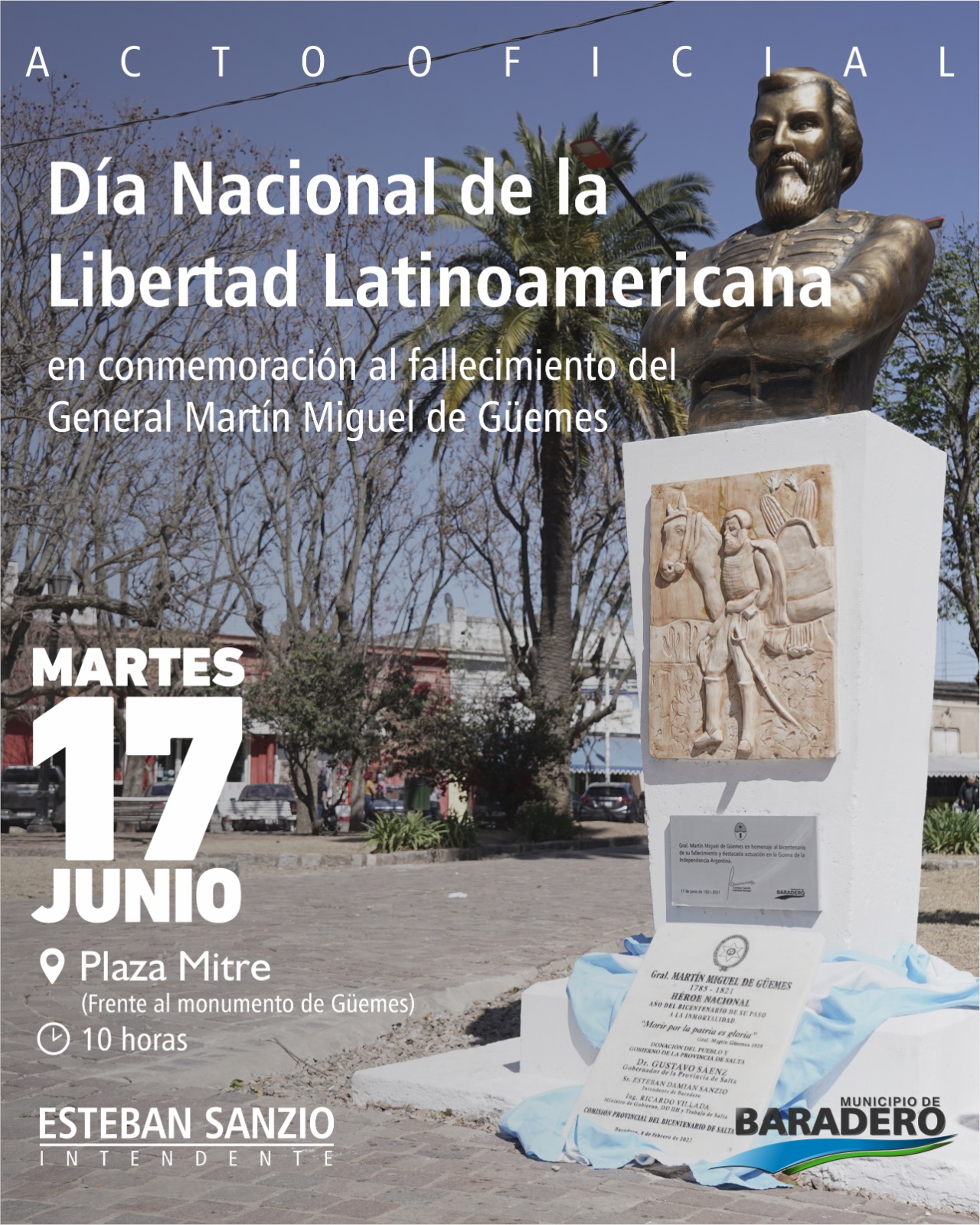 El Municipio de Baradero invita a la comunidad a formar parte del Acto Oficial para conmemorar el Día Nacional de la Libertad Latinoamericana.