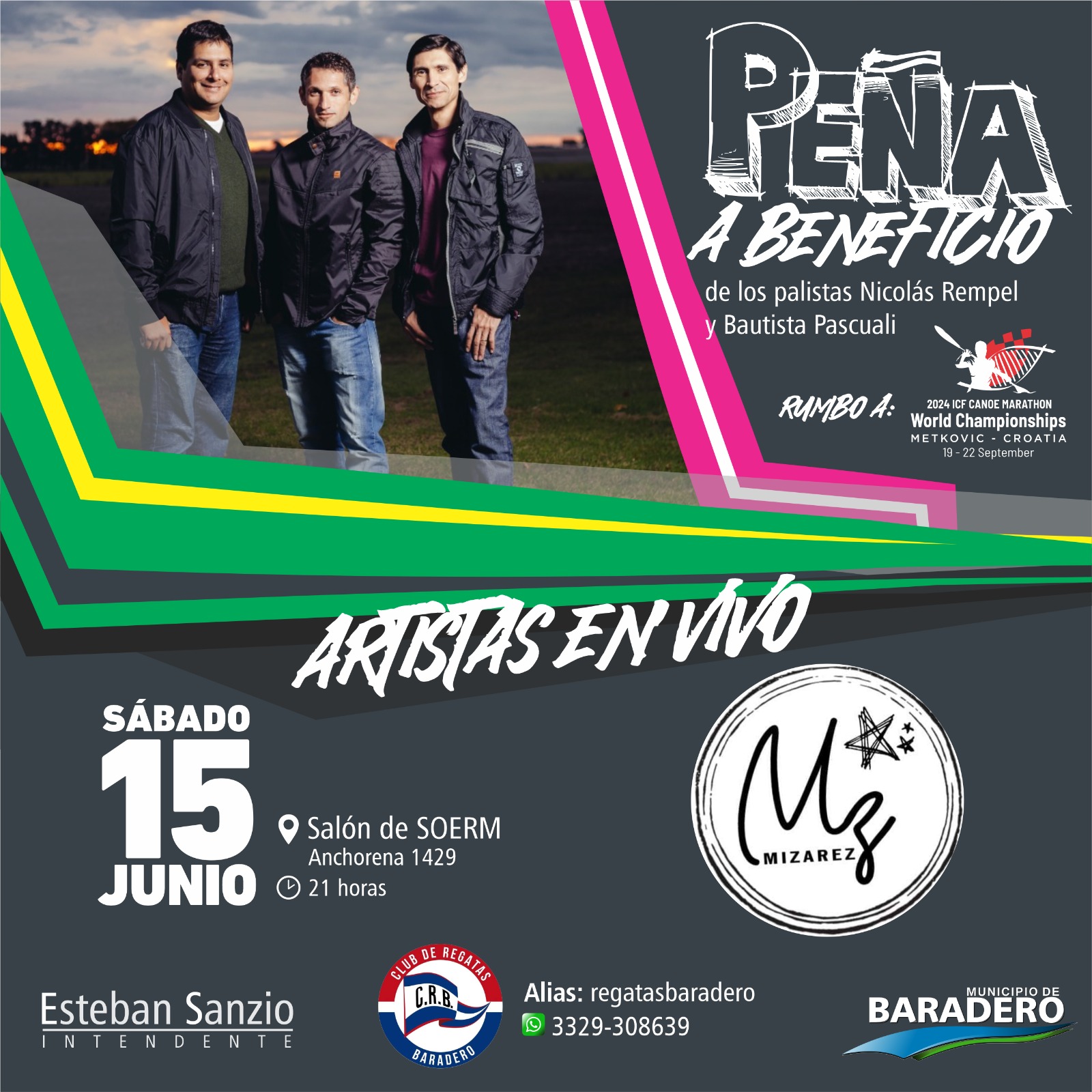 Con el objetivo de recaudar el dinero necesario para que los palistas de Baradero puedan estar presentes en el Campeonato Mundial de Maratón, que se llevará a cabo en septiembre de este año en Croacia, el Municipio de Baradero colaborará con la organización de una peña que se realizará el próximo sábado 15 de junio, en el salón del SOERM, a partir de las 21 horas.