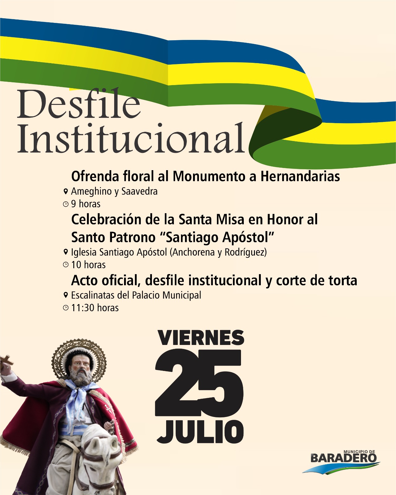 El Municipio de Baradero invita a toda la comunidad a las actividades protocolares oficiales a celebrarse el viernes 25 de julio de acuerdo con el siguiente