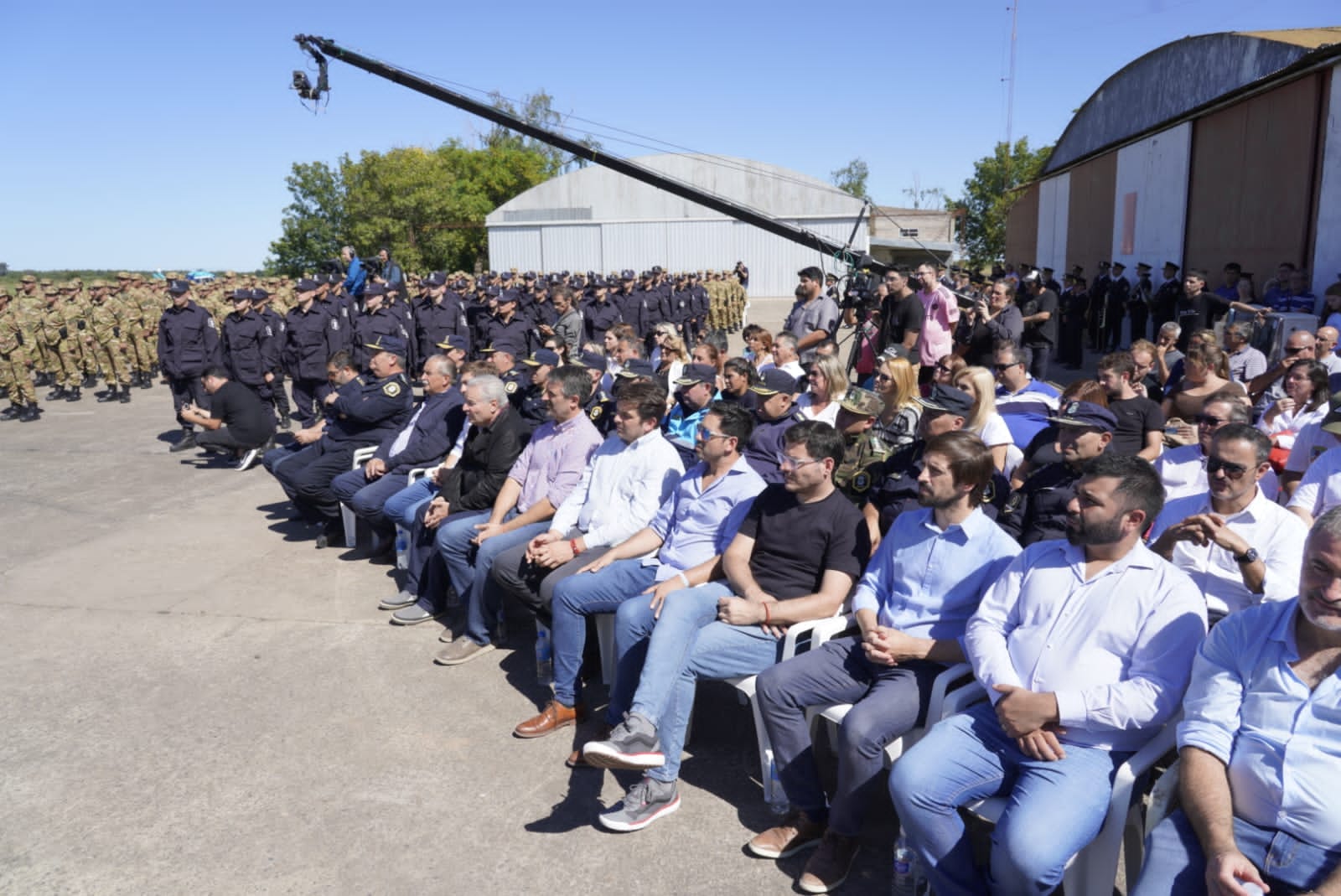El intendente Esteban Sanzio acompañó al gobernador de la provincia de Buenos Aires, Axel Kicillof, en la presentación de 250 nuevos agentes que formarán parte del cuerpo de la Policía Rural bonaerense, en un acto que se realizó en el Aeroclub de Baradero, junto al ministro de Seguridad, Javier Alonso.