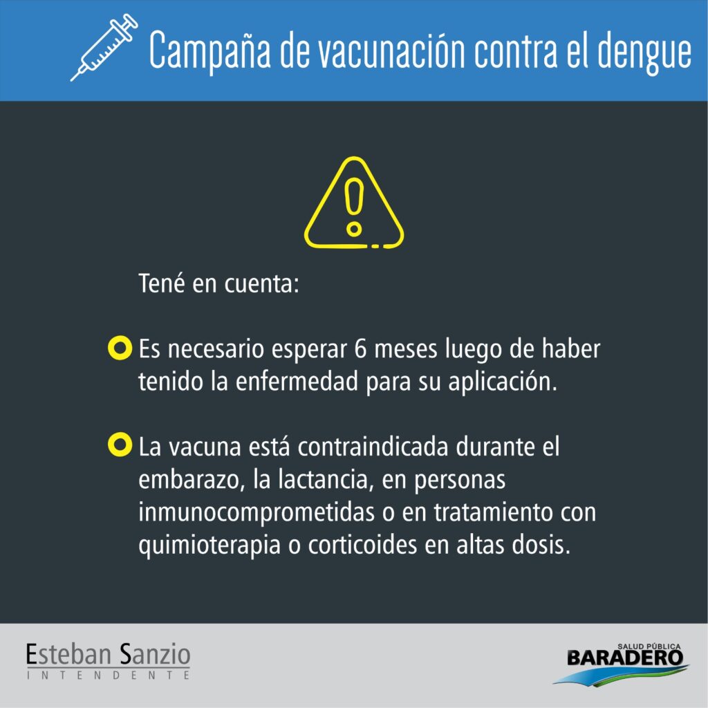 La Campaña de Vacunación se suma a las políticas públicas que se llevan adelante desde el municipio de Baradero para evitar la propagación del mosquito transmisor del dengue como las tareas de parquización, descacharreo y fumigación en todos los barrios de la ciudad y en las tres localidades del Partido de Baradero.