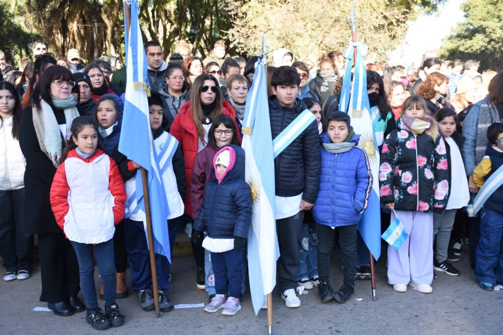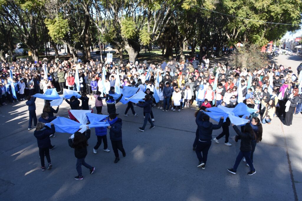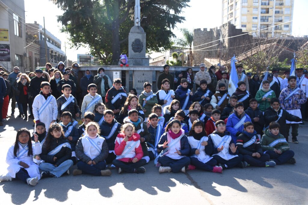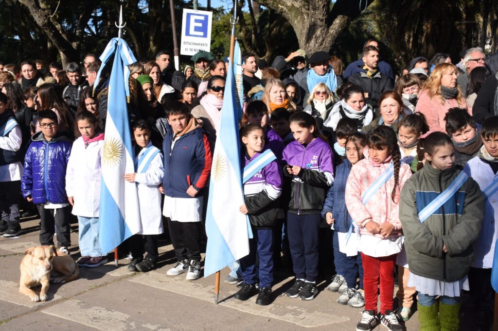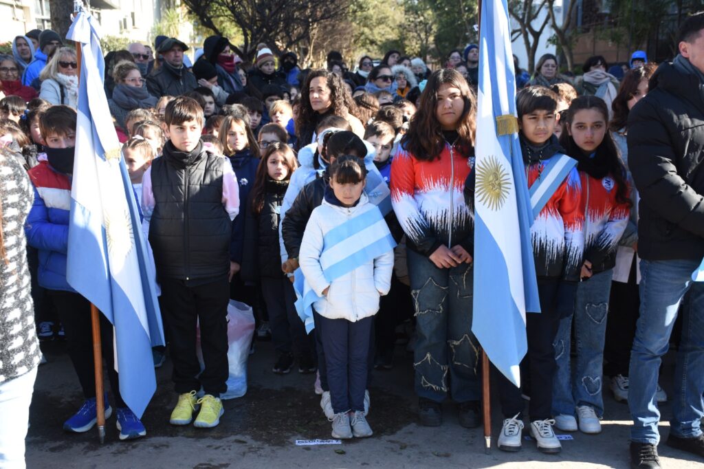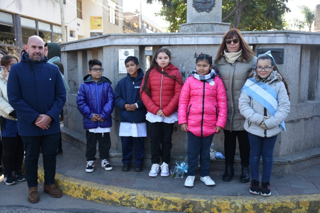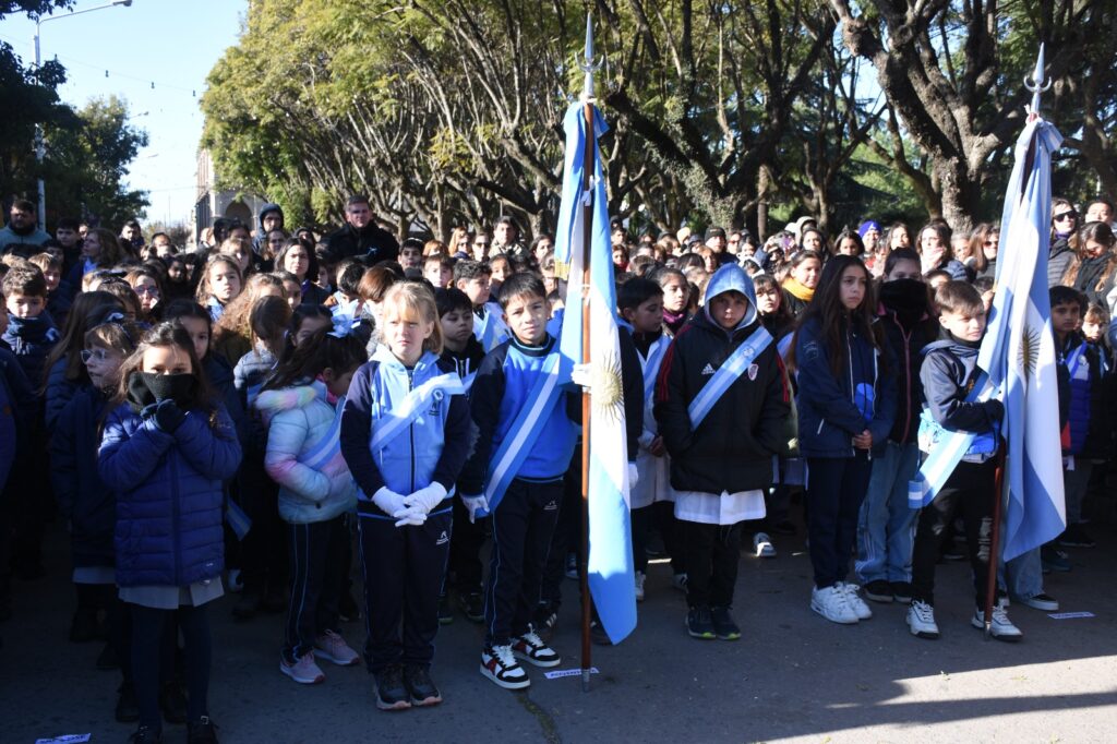 Luego de la entonación de las estrofas del Himno Nacional Argentino, se procedió a la colocación de una ofrenda floral, símbolo de homenaje y gratitud. La entrega estuvo a cargo de la secretaria general de gobierno, Silvana Iozzia, acompañada por alumnas y alumnos de las escuelas N° 5, N° 6, N°7, N° 8 y N°10, instituciones educativas que este año celebran su sesquicentenario.