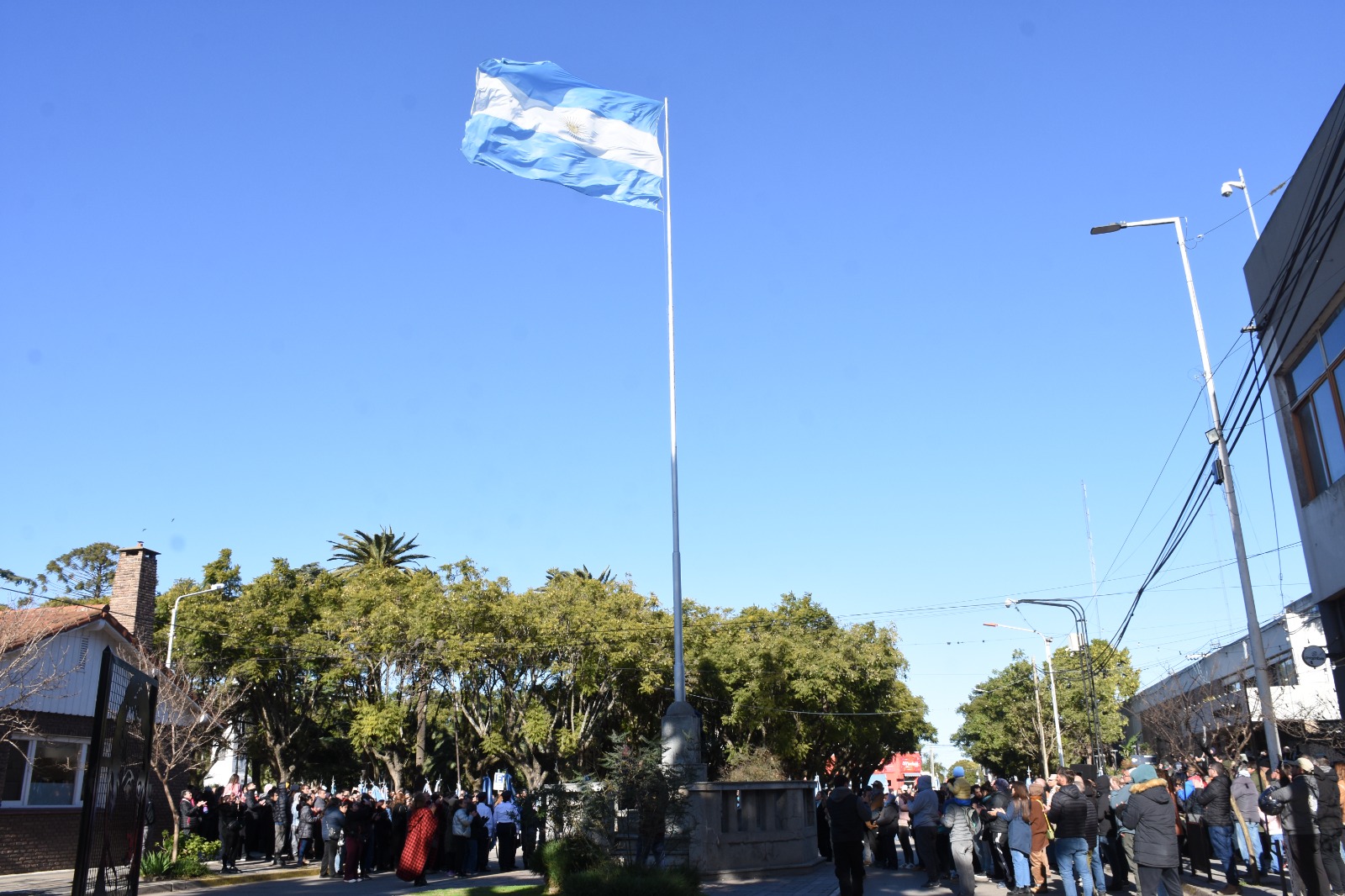 El intendente Esteban Sanzio encabezó el acto oficial por el Día de la Bandera en homenaje a su creador Manuel Belgrano, quien falleció el 20 de junio de 1820.