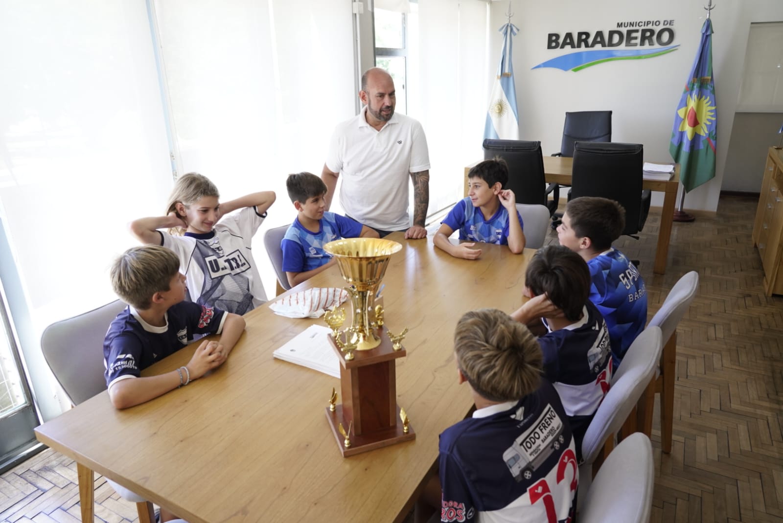 Este sábado por la mañana el intendente Esteban Sanzio recibió en su despacho a parte de la categoría 2011 del Club Sportivo quienes, comandados por Juan Gracia, se coronaron campeones en el torneo de fútbol infantil Olimpiadas Siglo XXI.