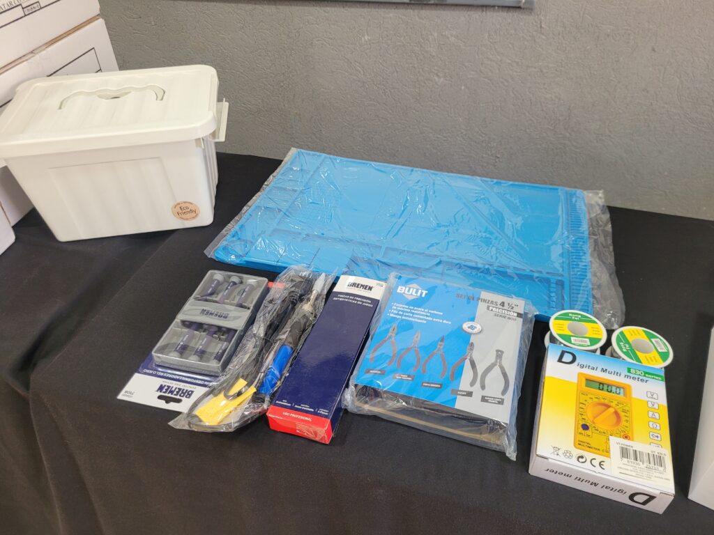 Además, se entregó una caja de herramientas completa para prácticas técnicas seguras y precisas, que incluye destornilladores de precisión, pinzas y alicates, bruselas antiestáticas, soldador con control de temperatura, multímetro digital, estaño y manta antiestática.