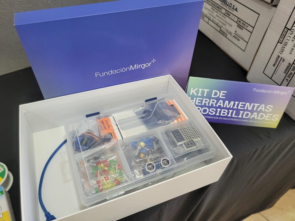 Cada escuela recibió 10 kits completos de mecatrónica. Este equipamiento permitirá a los equipos docentes desarrollar proyectos de robótica escolar, circuitos electrónicos y actividades de programación orientadas a la resolución de problemas. Lo mismos est{a equipados con una amplia variedad de componentes pedagógicos: placas Arduino Uno; sensores ultrasónicos, infrarrojos, de temperatura, humedad y nivel de agua; módulos de control como relés y motores paso a paso; displays, matrices LED y paneles de pulsadores; módems IoT como NodeMCU ESP32; lector RFID; acelerómetro y giroscopio MPU6050; joystick, control remoto, cables y conectores.