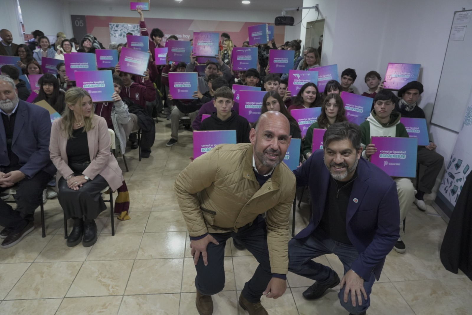 Luego de realizada la inauguración de esta nueva aula y como parte del programa bonaerense “Conectar Igualdad”, se procedió a la entrega de netbooks a alumnos y alumnas de instituciones educativas de nivel secundario.