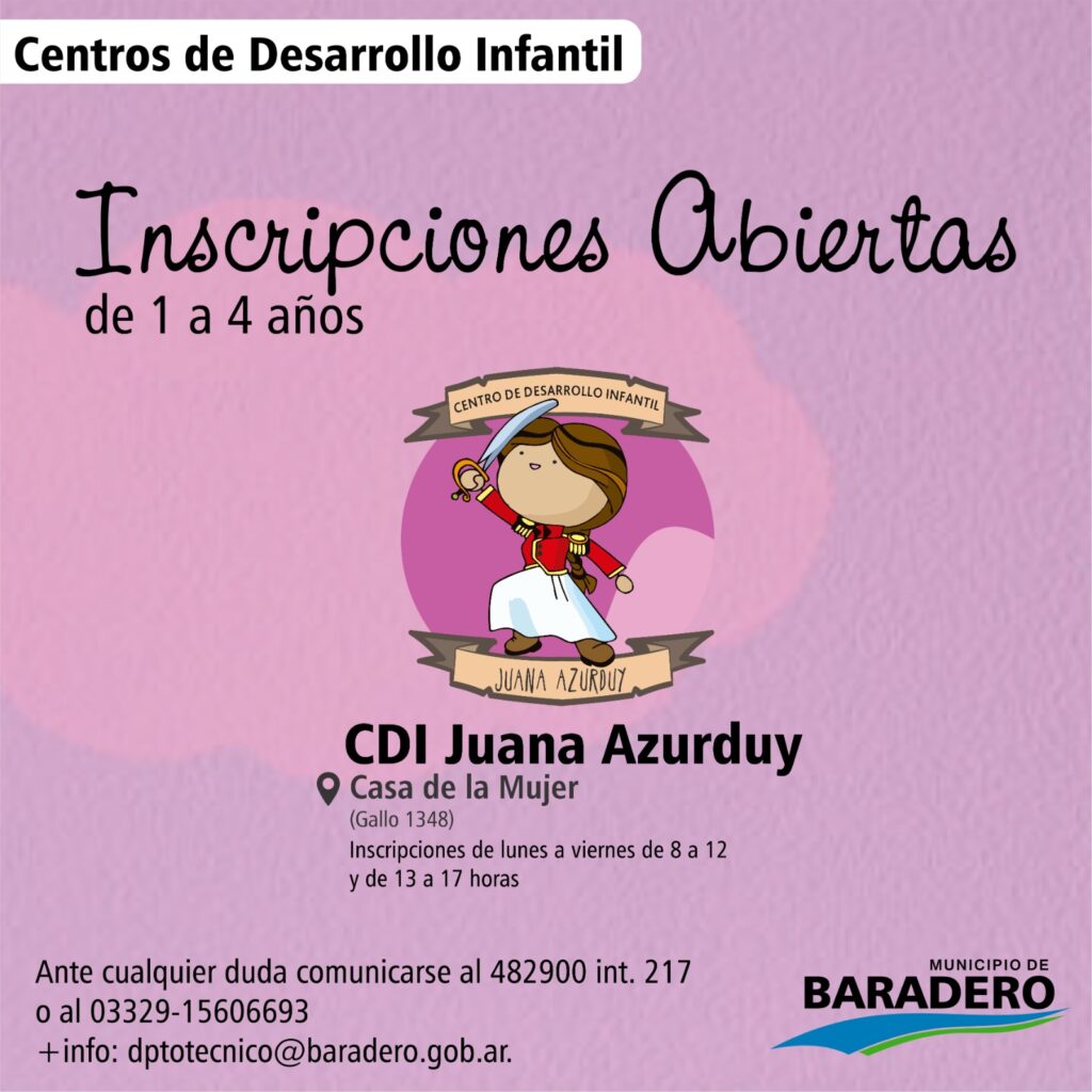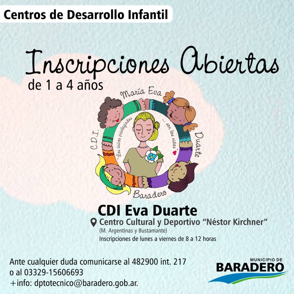 El Municipio de Baradero a través de la Secretaría de Desarrollo Social, comunica que está abierta la inscripción a los Centros de Desarrollo Infantil que brindan atención integral para el desarrollo de niñas y niños de 1 a 4 años.