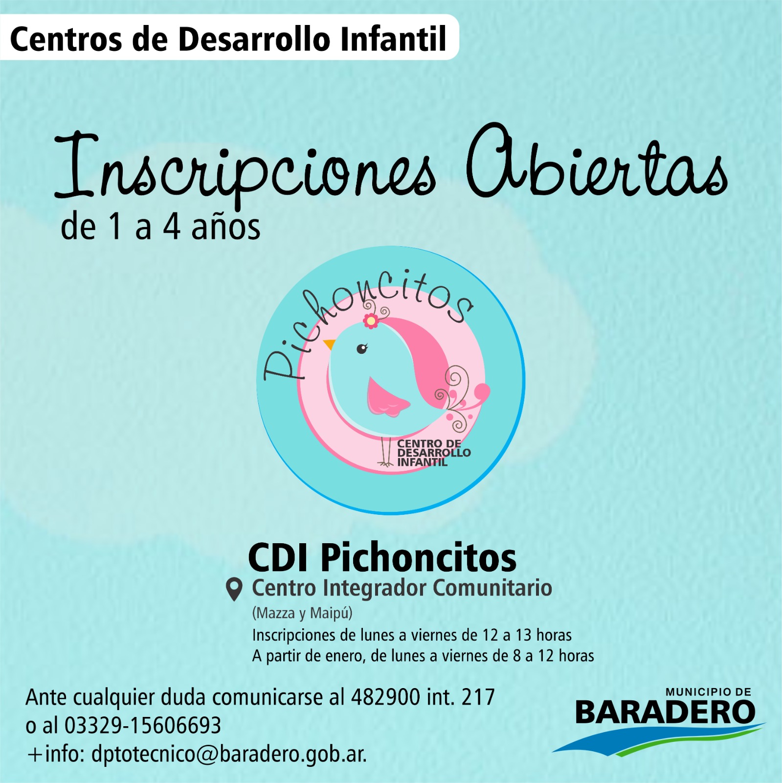 El Municipio de Baradero a través de la Secretaría de Desarrollo Social, comunica que está abierta la inscripción a los Centros de Desarrollo Infantil que brindan atención integral para el desarrollo de niñas y niños de 1 a 4 años.